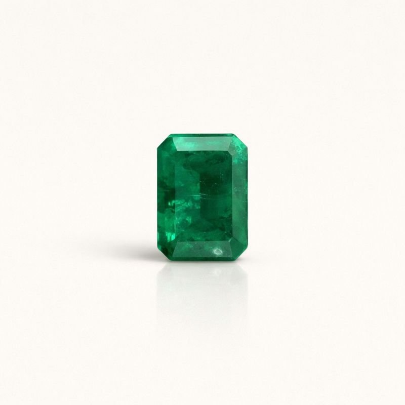 Uma esmeralda de leitura clássica e presença técnica, lapidada em formato retangular (emerald cut) para valorizar profundidade, transparência e geometria. Com 1,2 ct, apresenta verde equilibrado com nuances naturais, evidenciando a autenticidade própria da gema. As facetas amplas e os cantos chanfrados criam reflexos limpos e brilho real, com uma estética precisa e atemporal. Uma pedra versátil para joias sob medida, especialmente anéis, colares e brincos, com foco em proporção, elegância e permanência.